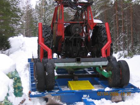 ..ja kärry mahtuu sopivasti kyytiin. Kärryn kuormaaminen ja paloittelu onnistuu Massikan kuormaajan avulla.