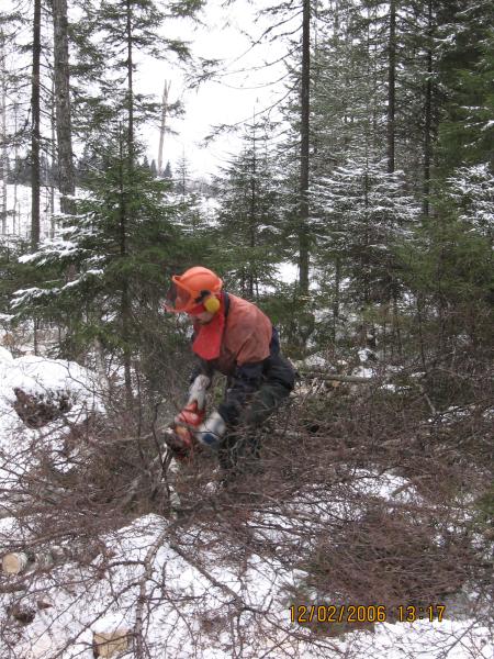 Hakkuu- ja ajohommissa lapio-ojan varressa helmikuussa 2006.