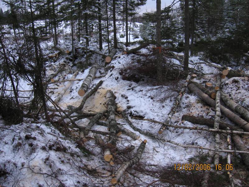 Hakkuu- ja ajohommissa lapio-ojan varressa helmikuussa 2006.