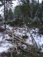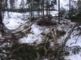 Ojaan tehdyn selkiytysaltaan päällä on hyvä karsia. Risut pitää vaan heitellä pois.