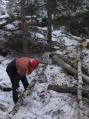 Jäätyneessä koivussa saksia täytyy vähän auttaa, jotta saadaan pitävä ote.