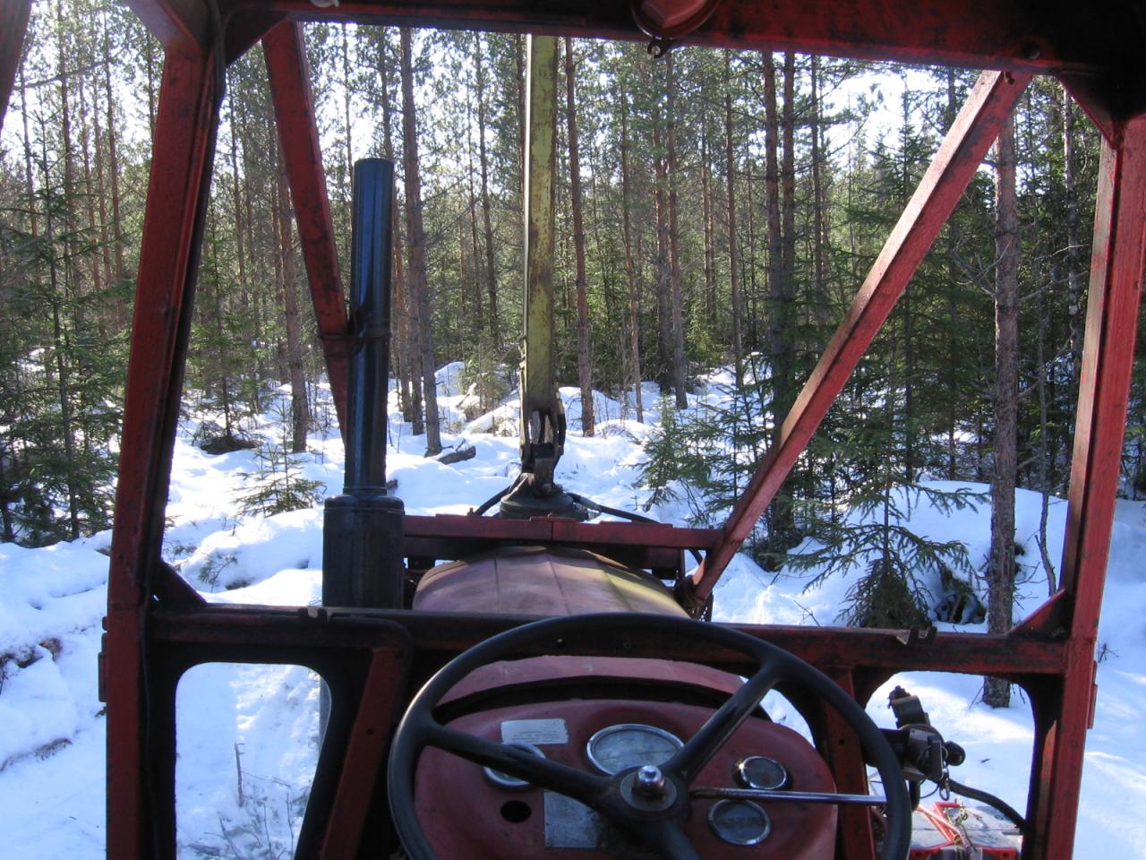 Kuljettajalla on avarat näköalat, koska ovet ja lasit on poistettu häiritsemästä kulkemista ja näkyvyyttä. Pakkaskeleillä on syytä panna kahdet villakalsarit päällekkäin.
