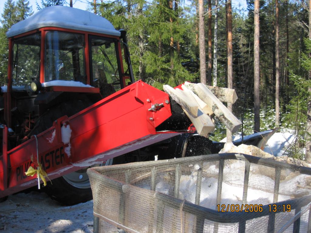 Polttopuiden tekoa klapisäkkeihin maaliskuussa 2006.
