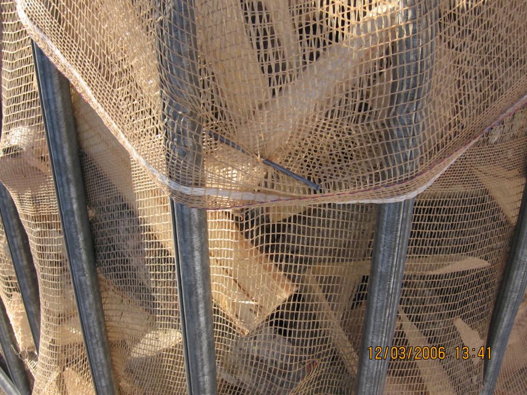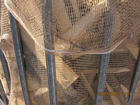 Polttopuiden tekoa klapisäkkeihin maaliskuussa 2006.