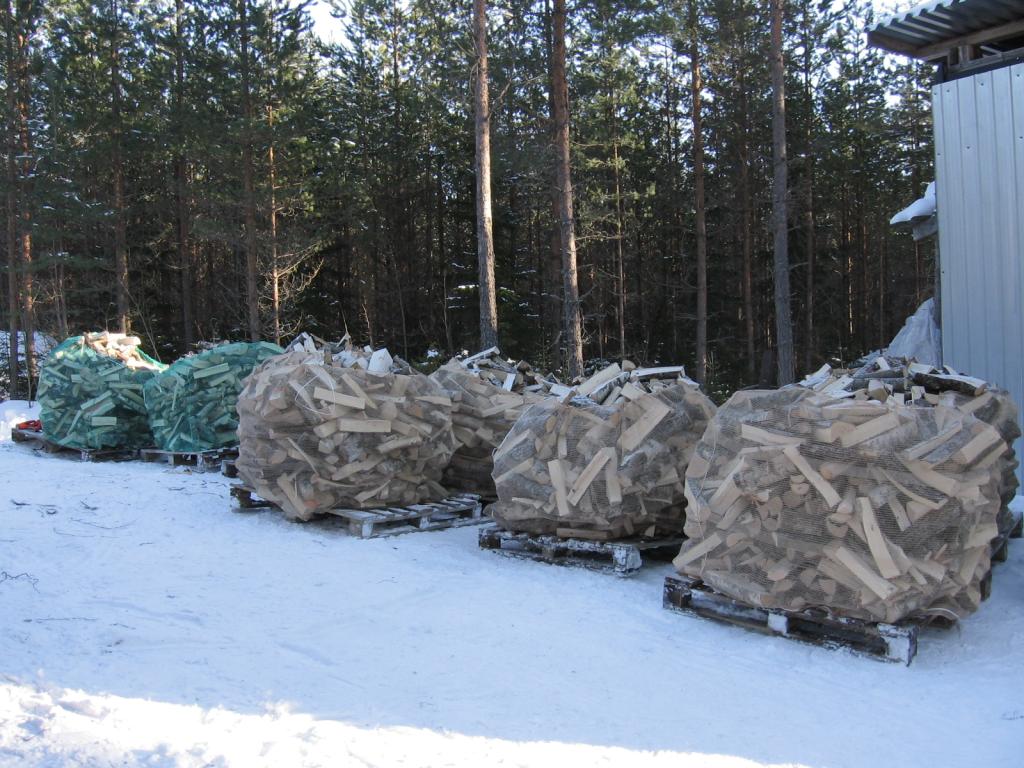 Polttopuiden tekoa klapisäkkeihin maaliskuussa 2006.