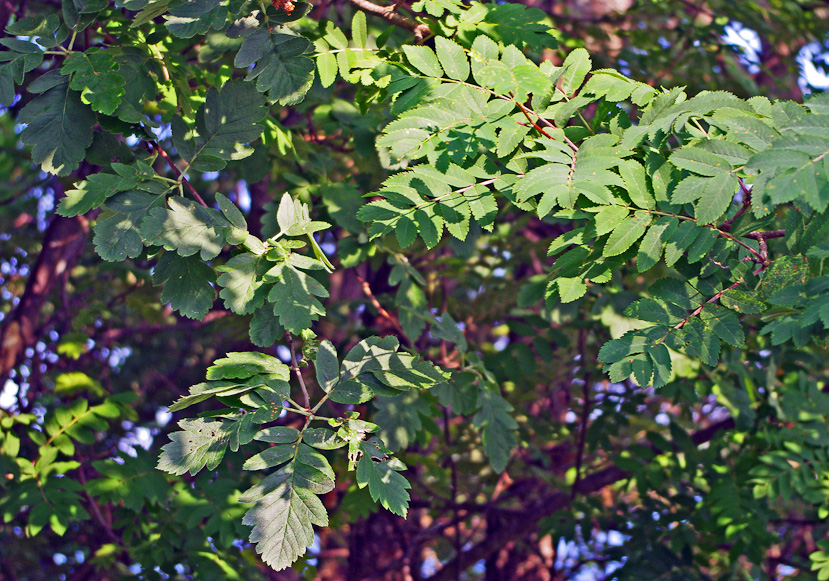 (Sorbus hybrida ja sorbus aucuparia) kasvavat vierekkäin.