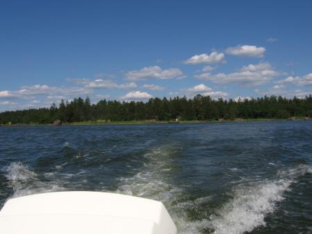 Kuttukari jää taakse. Vasta-auringossa takataulukin näkyy.