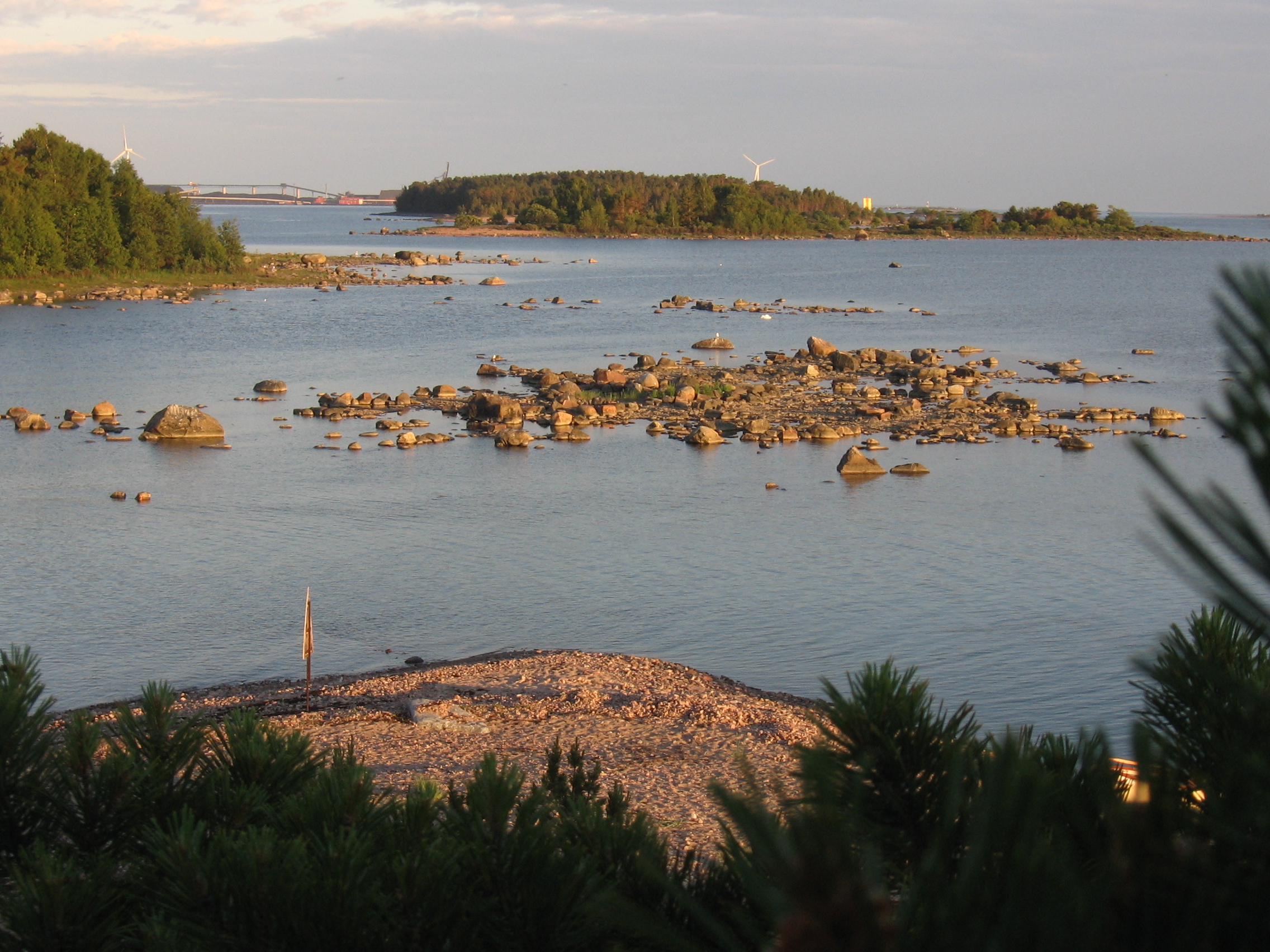 Enskerin eteläpuolen selkä männynlatvasta katsottuna. Näillä vesillä kipparin on parempi olla selvin päin.