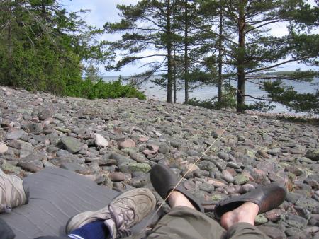 ..ja lähdetään ihmettelemään, miten pieleen meteorologit taas ovatkaan sään ennustaneet. Pilviä ei ole missään ja ilma mitä parhain: aurinko paistaa ja tuuli pitää rauhanhäiritsijät mantereella..