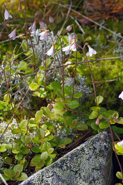 Vanamo (Linnea borealis) kasvaa runsaana koko saaressa.