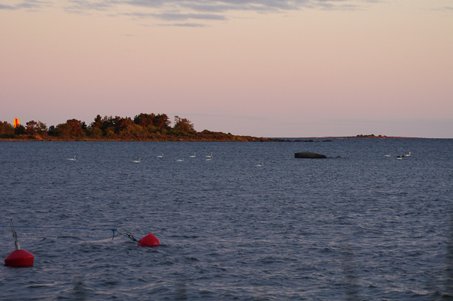Joutsenet suuntaavat yöksi avomerelle päin.