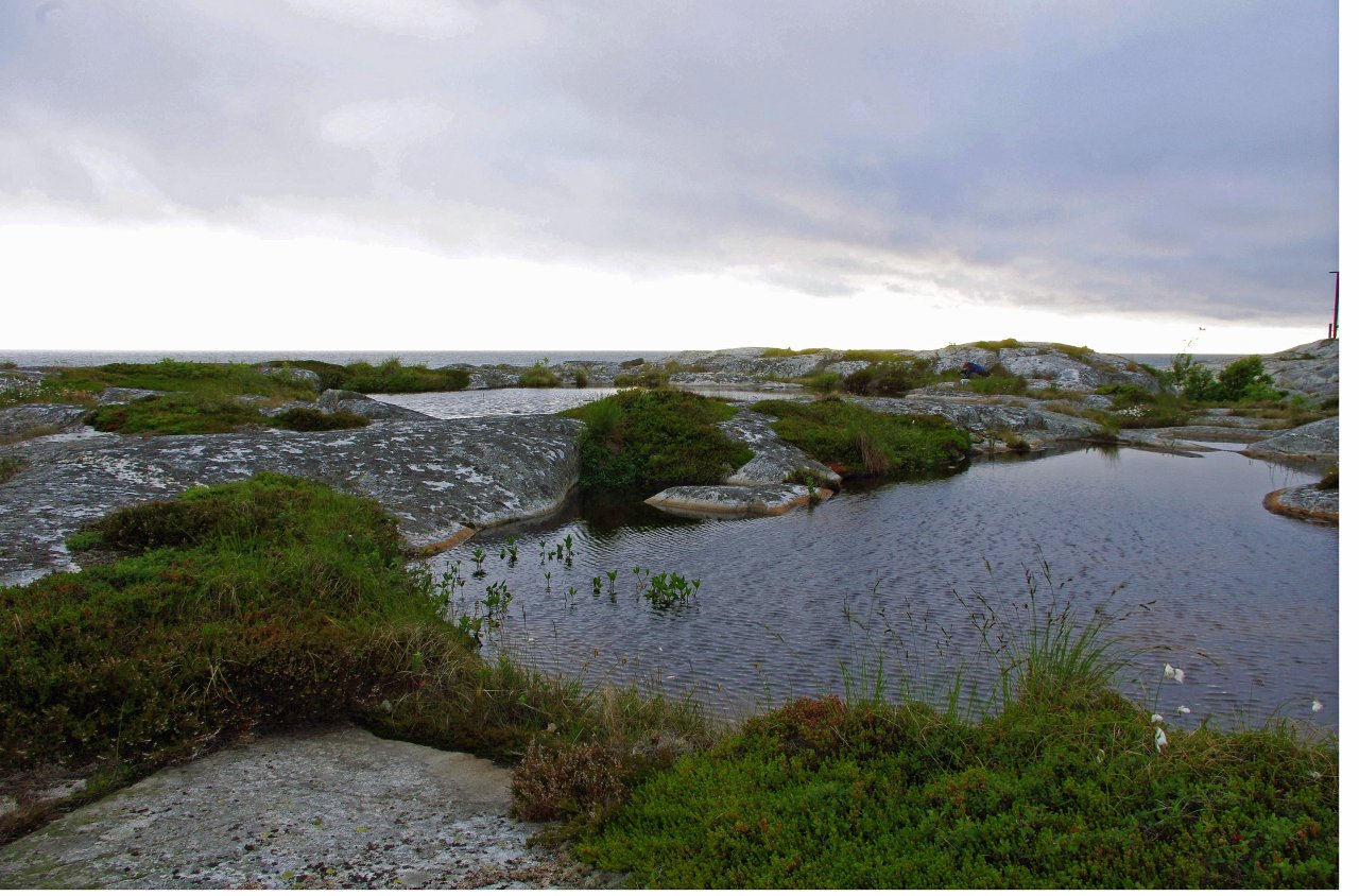 Saaren merenpuoleisessa nurkassa kallio on sen verran tiivistä, että sen päällä, kymmenisen metriä merenpinnan yläpuolella on sadeveden muodostamia altaita..