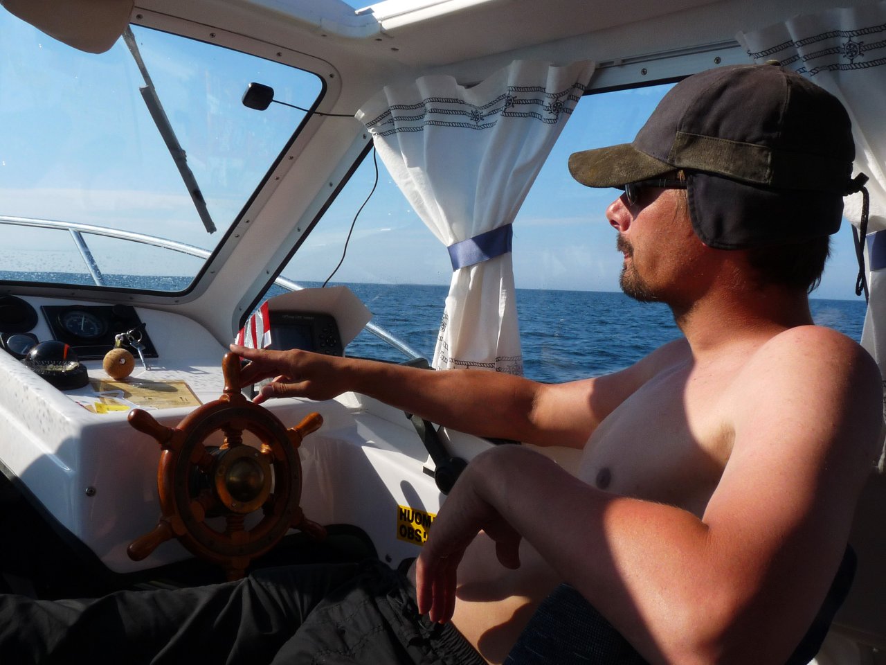 Lippaa tarvitsi sekä kuski että plotteri, jonka näyttö ei tuntunut pimenemättä kestävän lainkaan suoraa auringonvaloa.