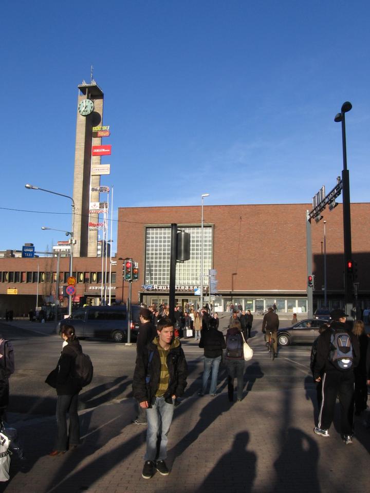 Rautatieaseman edestä piti hankkiutua nopeasti eteenpäin, koska paikalla pyöri runsain mitoin paikalliseen kansallispukuun - punaiset työhaalarit - pukeutuneita kaupustelijoita, jotka yrittivät herättää matkailijoiden mielenkiinnon "ostat tamppinääs"-huudoillaan. Matkaoppaan neuvoja ja ääntämisohjeita noudattaen kaupustelijat sai karistettua päättäväisen lujalla tokaisulla: "evvarmanaostammeinaa" ja poistumalla paikalta.