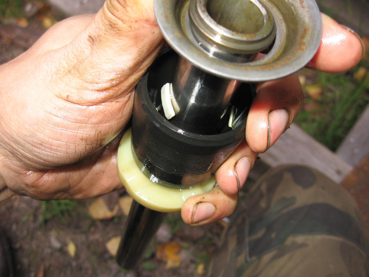 Lisää murusia on mäntäputken kumiholkin sisällä.