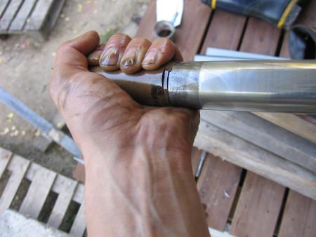Syöpymät hiotaan sylinteriputken ulkopinnalta numeron 800 vesihiomapaperilla. Toimii näköjään naftankin kanssa.