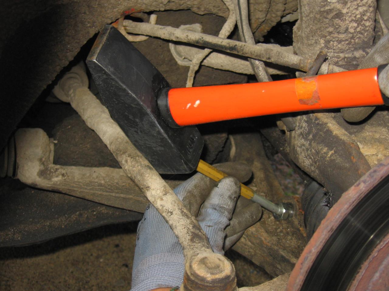 ..sopiva mutteri suojaamaan kierteen päätä, pari napautusta vasaralla..