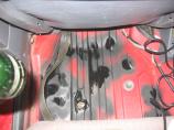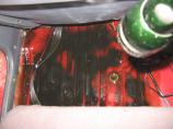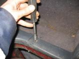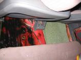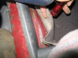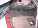 Etupenkkien välinen kotelo pitää avata takapäästään maton irrottamiseksi.