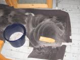 Homeinen eriste heitetään saunan pesään, matto pestään klooripesuaineella..