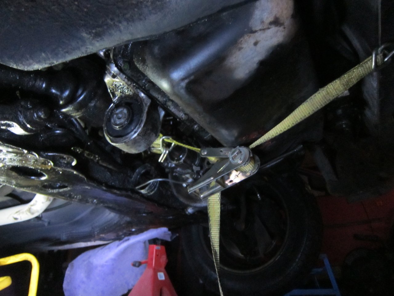 A leak has emerged around the octopus region in the Break. Examination starts by taking off the lower engine mount, and moving the engine a few cm forward..