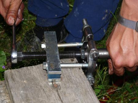 Toisen puolen stefan päällä ollut klunssi lähtee laakerinulosvetäjän ja M12 nyloc-mutterin avulla.