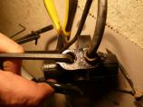 Avataan mutteri kuusiokoloavaimella (hylsy ei mahdu, joten pitää käyttää perinnemallin avainta)..