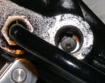 ..ja alta paljastuu kuusiokoloruuvi, jonka takana sihti piilottelee. Sihtejä on 2 kappaletta, yksi kummassakin virranjakoventtiiliin päin tulevassa putkiyhteessä.