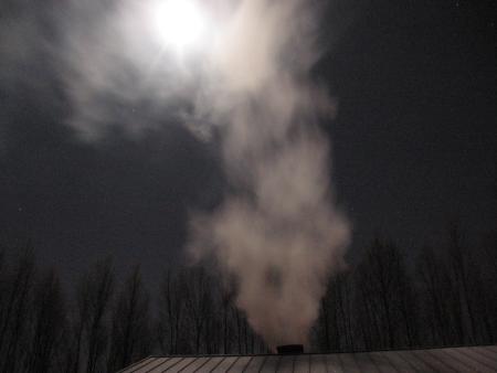 Ensimmäiset savut keskuslämmityskattilasta.