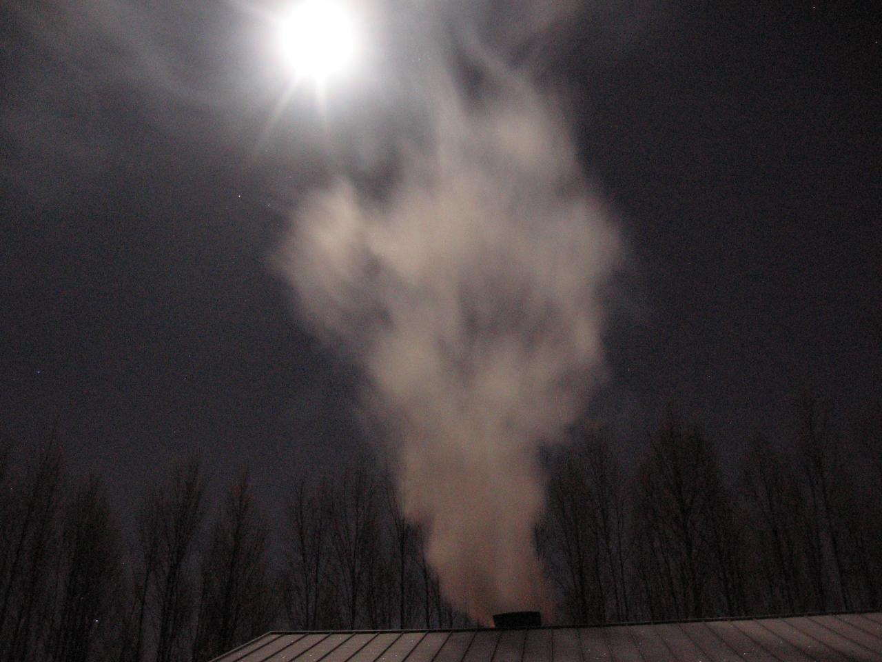 Ensimmäiset savut keskuslämmityskattilasta.