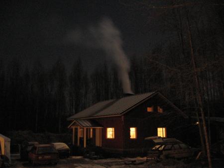 Ensimmäiset savut keskuslämmityskattilasta.