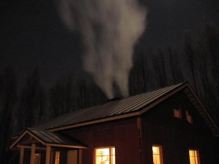 Ensimmäiset savut keskuslämmityskattilasta.